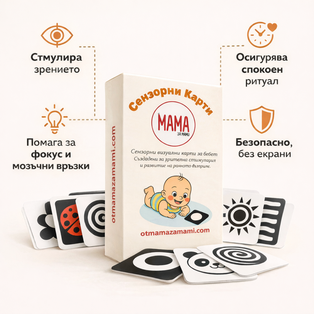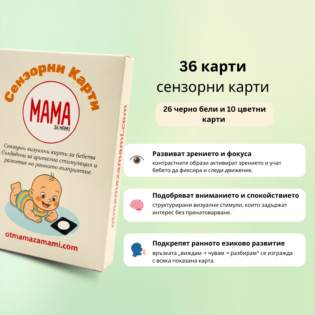 36 сензорни визуални карти, създадени да подпомогнат фокуса, вниманието и ранното зрително възприятие на бебето.